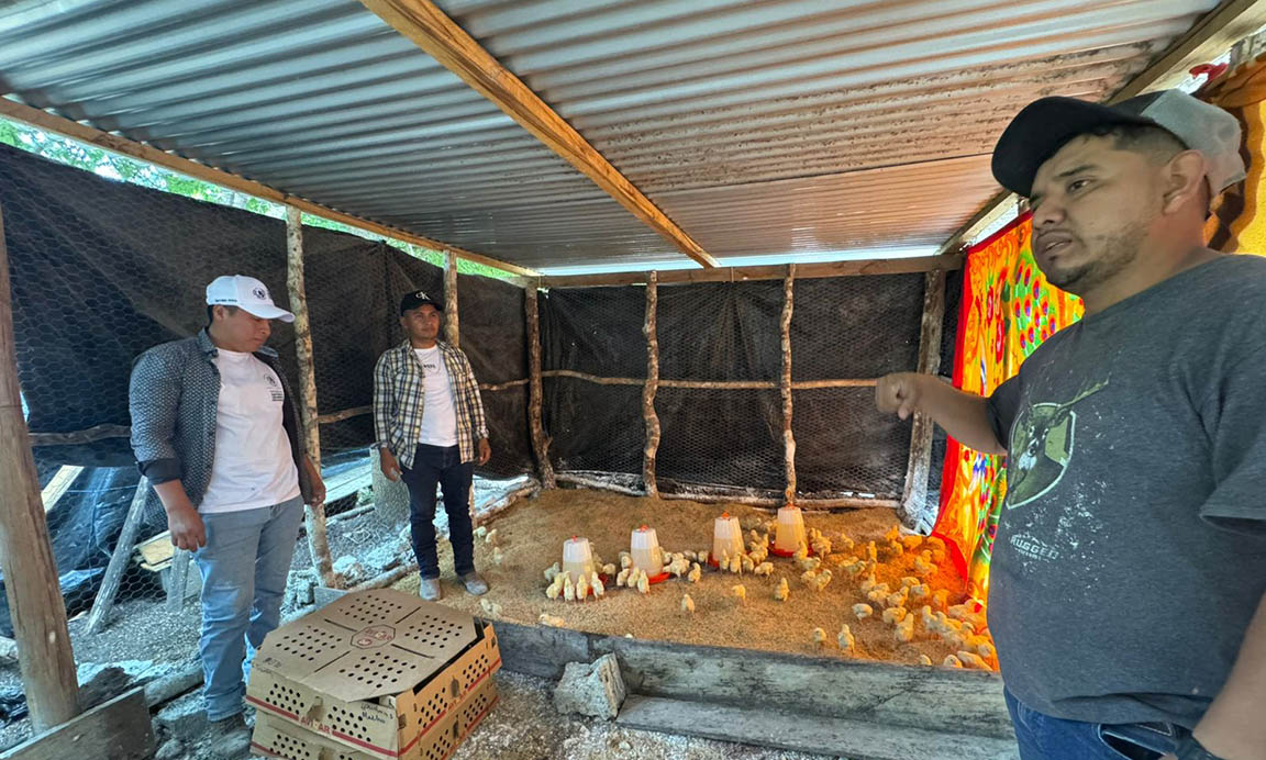 El apoyo incluye 100 pollos de engorde, 8 quintales de concentrado balanceado, granza de arroz, bebederos, comederos, electrolitos, vitaminas, bromexina y vacunas avícolas, lo cual permitirá a los beneficiarios iniciar su producción con insumos completos y adecuados.
