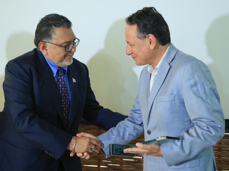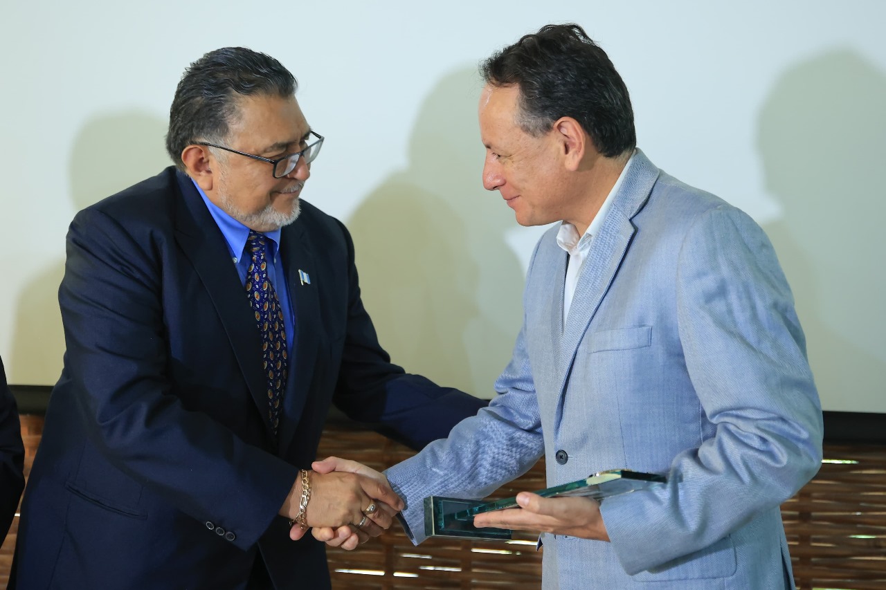 El ministro Maynor Estrada, entregó el galardón a Granja Guayacán, que destacó por su producción porcina sostenible con el medio ambiente. También se entregó el premio a la empresa Kaxin S.A. por su producción de huevo con procedimientos que garantizan alimentos inocuos.