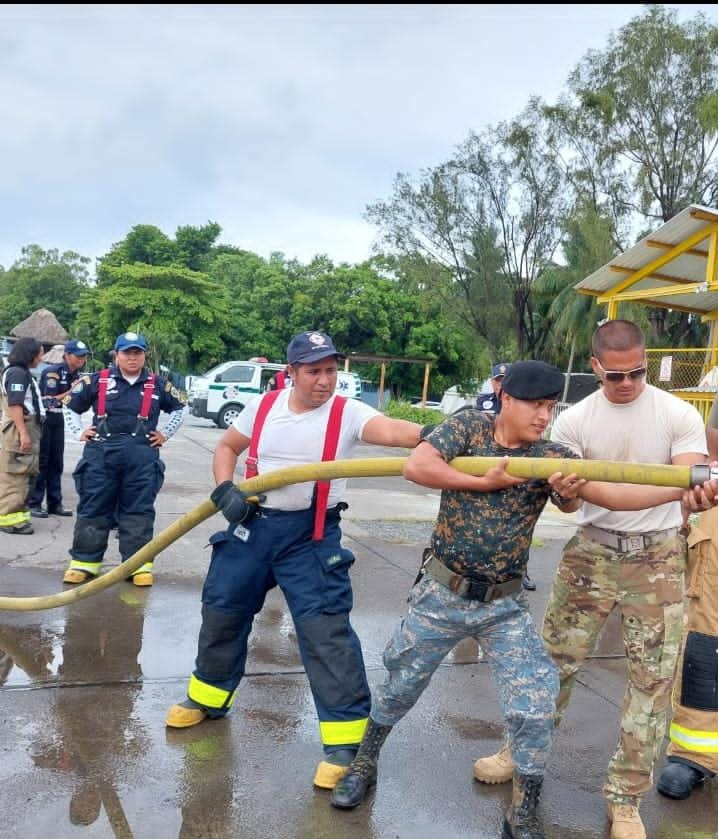 En las instalaciones de la Brigada de Paracaidistas “General Felipe Cruz”, bomberos de la Fuerza Aérea de los Estados Unidos, realizaron un simulacro de accidente aéreo, en el que participó personal de referida Brigada, Bomberos Voluntarios y Municipales del departamento de Escuintla. El entrenamiento incluyó la práctica de salvamento, rescate y evacuación dentro de una aeronave, con la finalidad que el personal aprenda a responder y atender cualquier contingencia que pueda presentarse durante un vuelo.