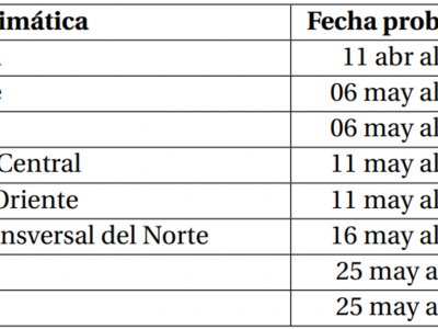 A partir de mayo podría iniciar la presencia de lluvias en las regiones Occidente, Pacífico, Altiplano Central, Valles de Oriente, Franja Transversal del Norte, Caribe y Norte, tomando en cuenta que, la finalización de dichas condiciones atmosféricas es distinta en cada región.