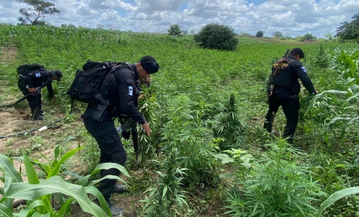 Las fuerzas antinarcóticas erradicaron 78,288 plantas de marihuana en distintas fases de crecimiento y aprovechamiento, con un valor estimado de Q39,144,000, equivalente a USD 5,018,461.54 dólares americanos.