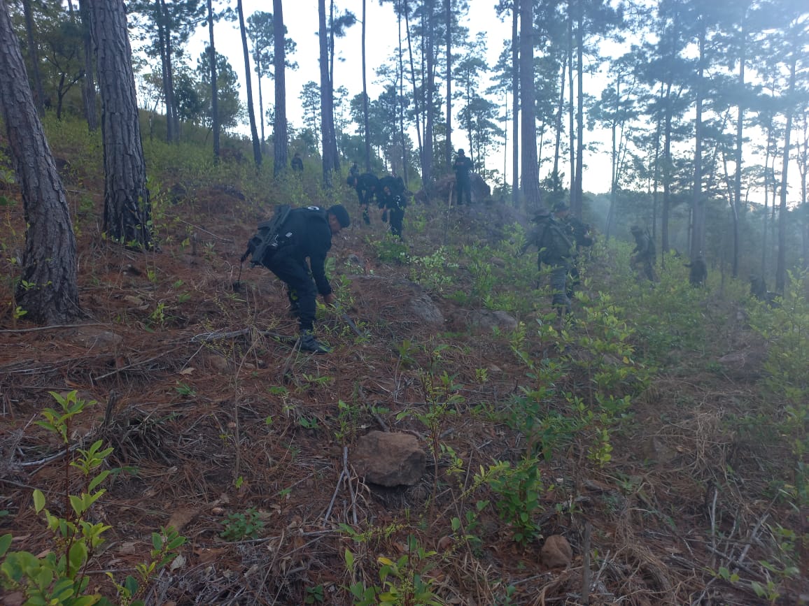 Agentes de la Subdirección General de Análisis de Información Antinarcótica (SGAIA) de la Policía Nacional Civil (PNC), en coordinación con elementos del Ejército de Guatemala realizaron los días 22 y 23 de febrero operativos de búsqueda, localización y erradicación de cultivos ilícitos en áreas montañosas de Concepción Las Minas, Chiquimula.
