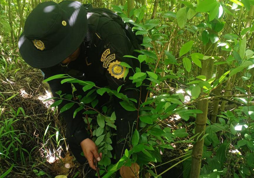 En un operativo realizado por elementos de la Subdirección General de Análisis de Información Antinarcótica (SGAIA) de la Policía Nacional Civil (PNC), fueron erradicados 10 272 arbustos de hoja coca en fase de aprovechamiento.