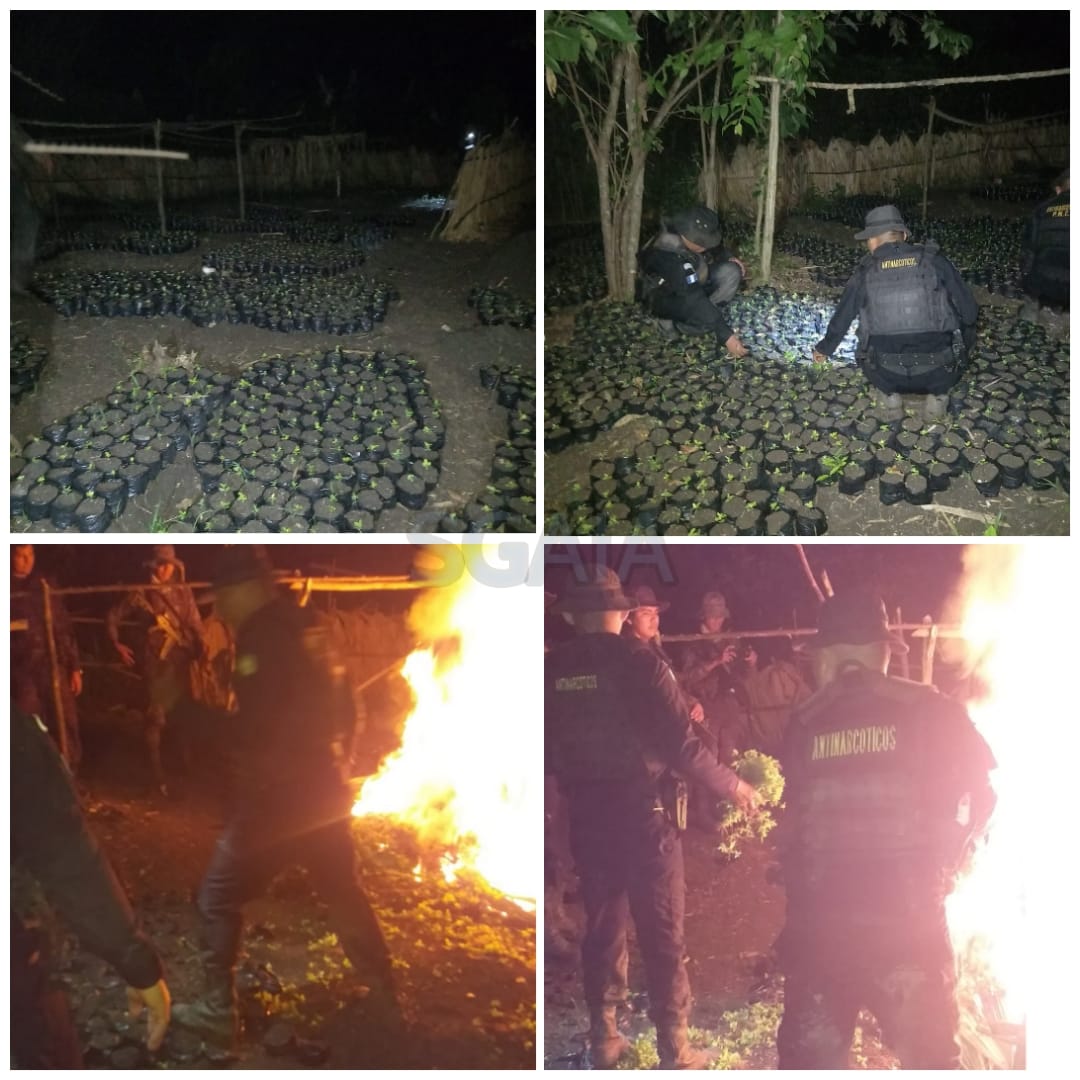 En un operativo de búsqueda, localización y erradicación de cultivos ilícitos, personal de la Subdirección General de Análisis de Información Antinarcótica (SGAIA), de la Policía Nacional Civil (PNC), en coordinación con el Ejército de Guatemala, erradicaron hojas de coca en crecimiento en Petén.