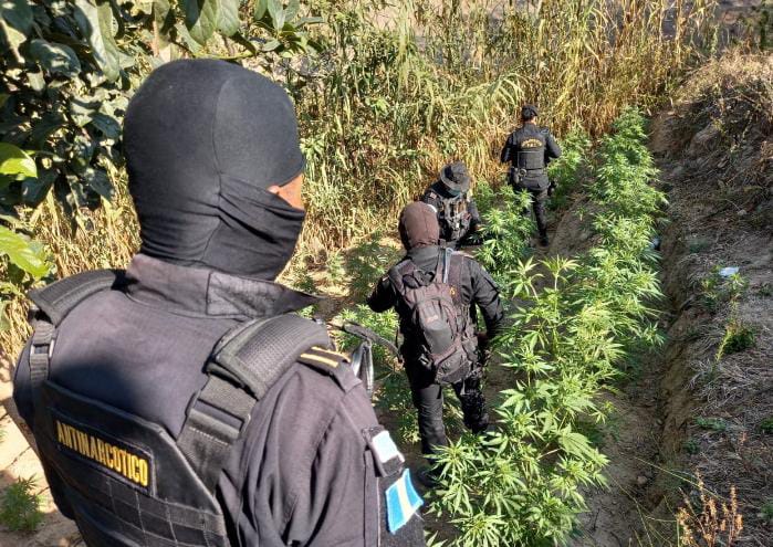 El hallazgo se efectuó en Santa Lucía La Reforma, Totonicapán y Malacatancito Huehuetenango, donde con el apoyo del Ejército de Guatemala se logró la erradicación de 4, 698 matas de Marihuana.