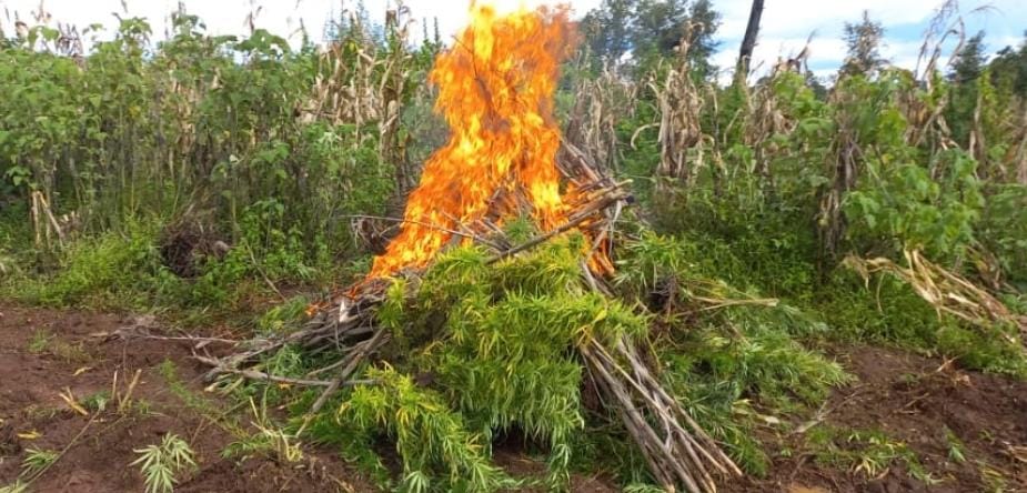 Agentes de la Subdirección General de Análisis de Información Antinarcótica (SGAIA) de la Policía Nacional Civil (PNC), lograron este 19 de septiembre la erradicación de 12 mil 876 matas de marihuana.