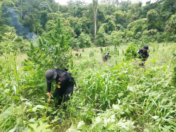 Ante ello, agentes de la Subdirección General de Análisis de Información Antinarcótica (SGAIA) de la Policía Nacional Civil (PNC) ubicaron y erradicaron 112 mil 500 matas de marihuana en fase de aprovechamiento.