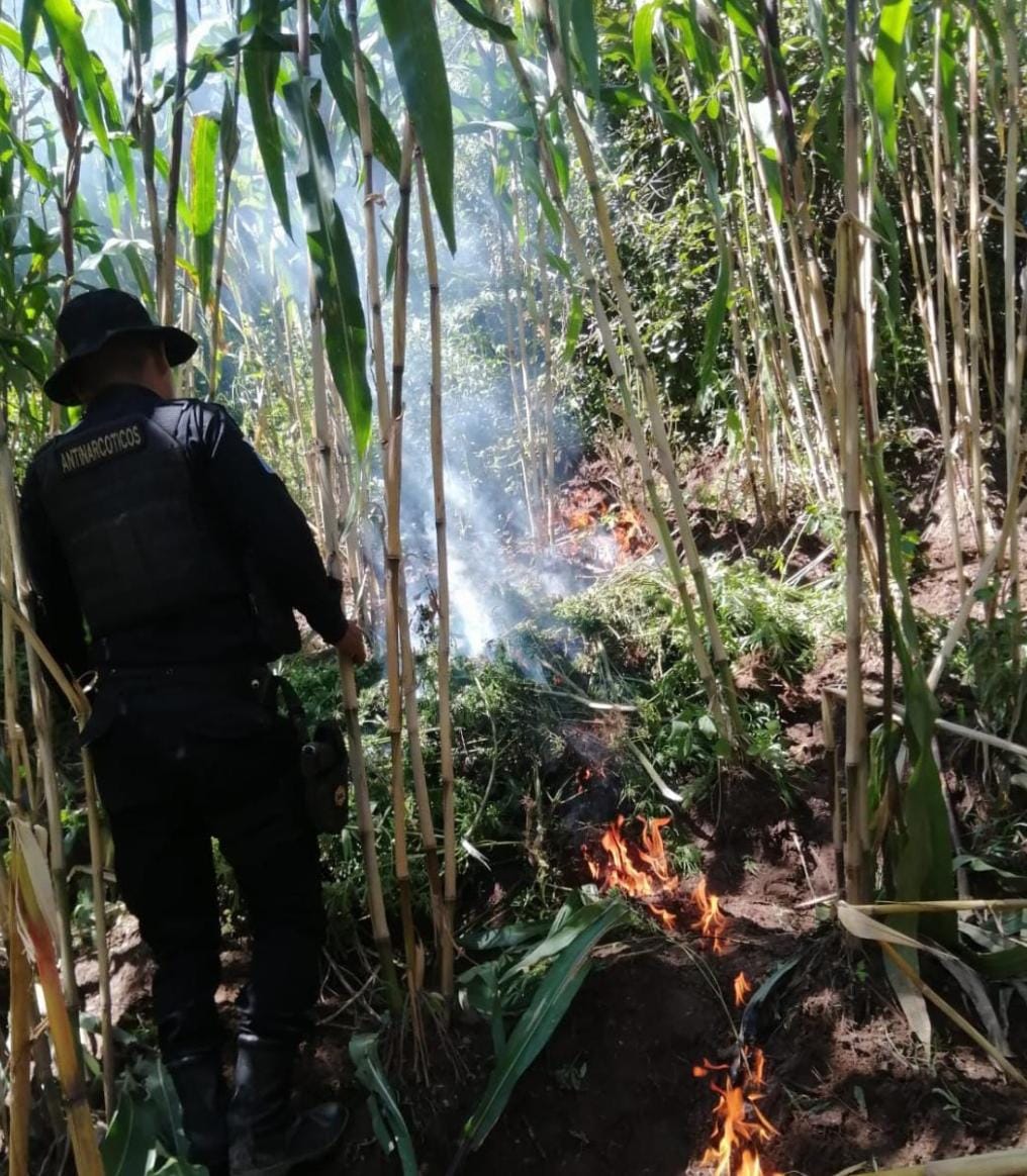 En el paraje Xejuyup y la aldea Pamaria, Santa Lucía La Reforma y el paraje Patum, caserío San José Siguilá, Momostenango, Totonicapán, agentes de la comisaría departamental y de la Subdirección General de Análisis de Información Antinarcótica (SGAIA), de la Policía Nacional Civil (PNC), localizaron plantaciones ilícitas.