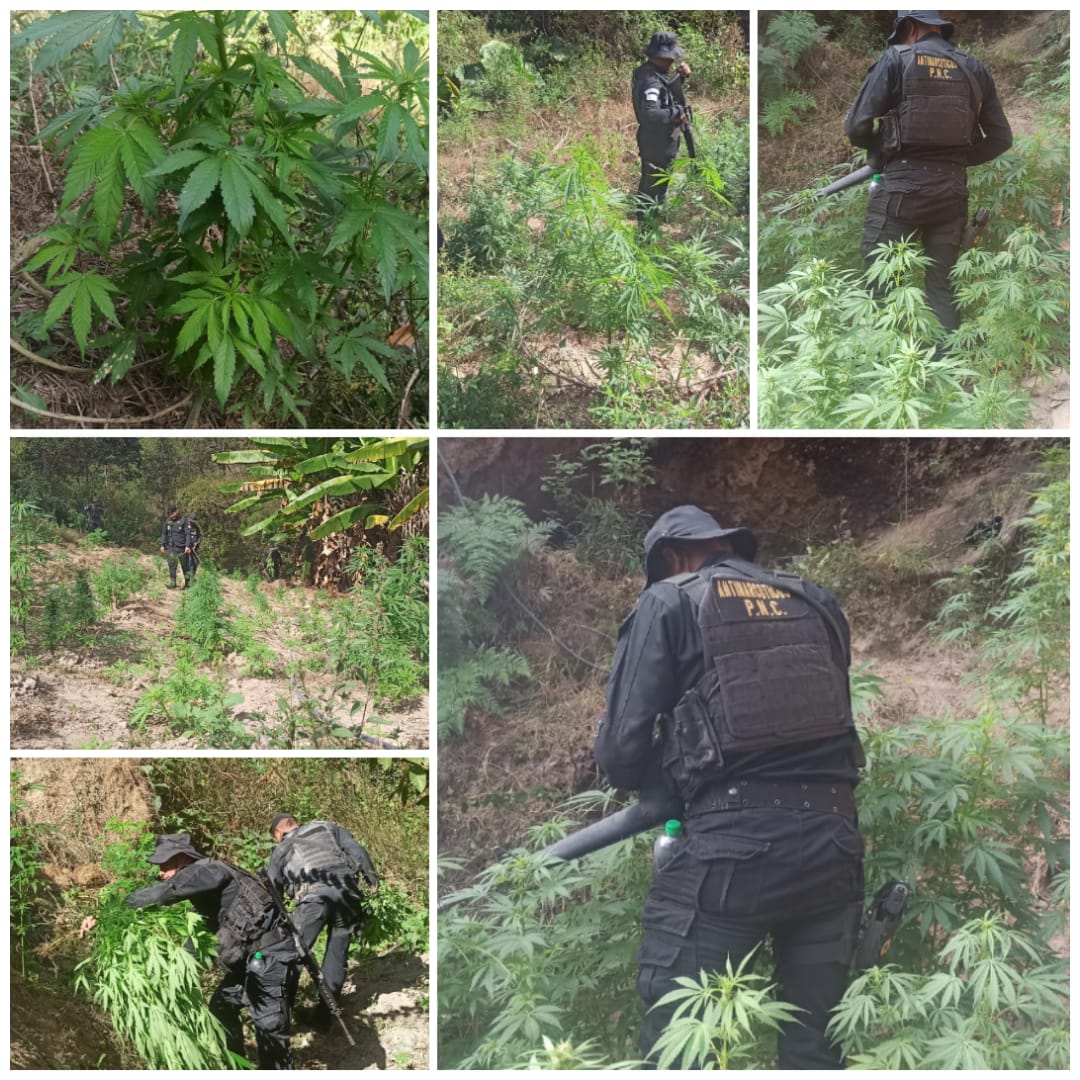 Hoy, agentes de la Subdirección General de Análisis de Información Antinarcótica (SGAIA) de la Policía Nacional Civil (PNC) continúan desarrollando de forma estratégica operativos de búsqueda, localización y erradicación de cultivos ilícitos en distintos puntos del país.