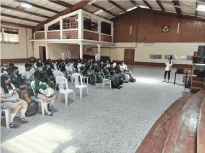 El salón de usos múltiples del referido plantel fue el escenario adecuado para que 56 escolares de la carrera de perito contador pudieran por medio de actividades dinámicas concientizarse sobre el cuidado de los recursos naturales.