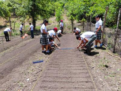 Escolares de Santa Ana aprenden a cultivar en huerto escolar