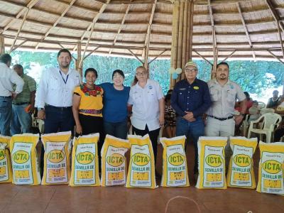 El Ministerio de Agricultura, Ganadería y Alimentación (MAGA) celebró el Día Nacional del Maíz, con actividades protocolarias y entrega de semillas de maíz de la variedad ICTA B-7 a los agricultores, en Masagua, Escuintla.