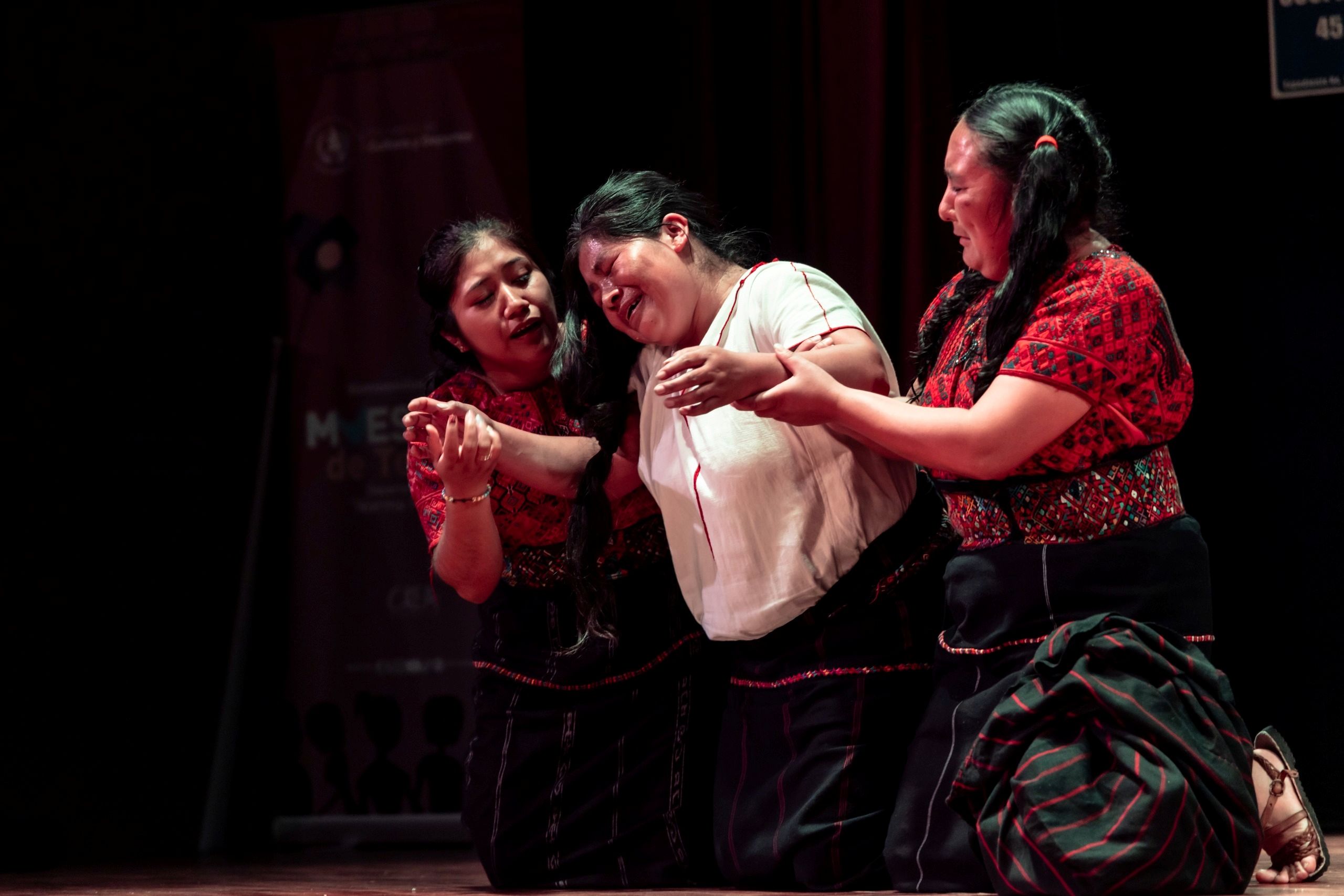 La segunda presentación fue de Las Poderosas de Nahualá, Sololá, con “Violencia contra la mujer”. Recrea la historia de una esposa que sufre violencia física y psicológica de su pareja. Al buscar ayuda en el sistema de justicia, se enfrenta a un nuevo muro: una abogada que la discrimina por su falta de recursos y un esposo que, al enterarse, soborna a las autoridades para “solventar su situación jurídica”.