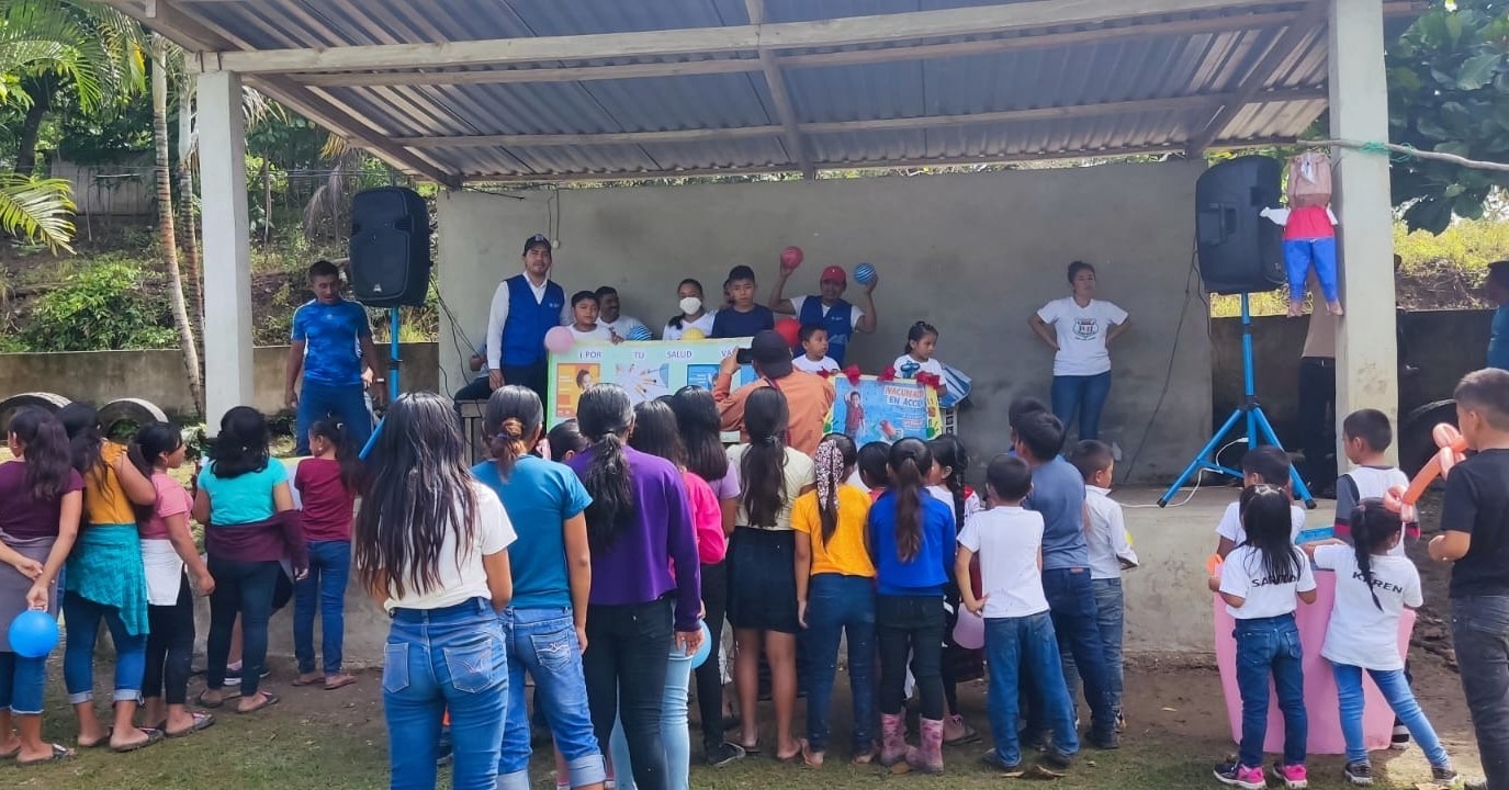Nos desplazamos al caserío Santa Amelia, Poptún, donde atendimos a niñas y niños de 2 a 5 años con la vacunación contra el sarampión, rubéola, paperas y poliomielitis.