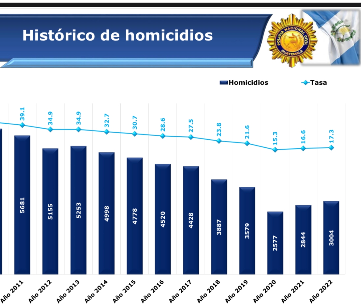 Con las acciones implementadas por el Gobierno del Presidente Alejandro Giammattei, instrucciones del Ministro de Gobernación, David Napoleón Barrientos y acción operativa de la Policía Nacional Civil, se logró la reducción en la tasa de homicidios en 2022.