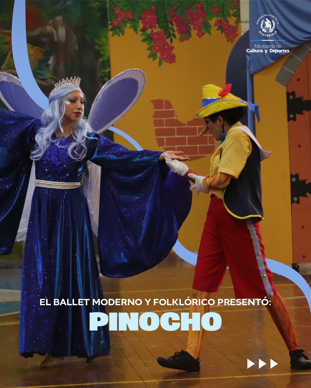 ¡Estreno departamental! El Ballet Moderno y Folklórico presentó por primera vez la puesta en escena “Pinocho”; una obra que durante tres días consecutivos cautivó a más de 7 mil estudiantes dentro de las instalaciones del Gimnasio Municipal de Mazatenango.