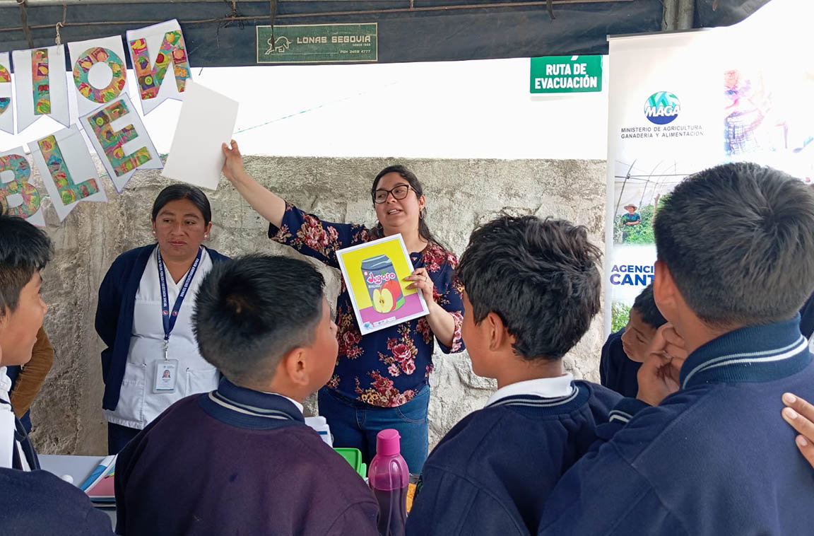 Interés y expectación causó el estand informativo que el Ministerio de Agricultura, Ganadería y Alimentación (MAGA) instaló en la Feria Informativa de Salud y Nutrición, desarrollada en el municipio de Cantel, Quetzaltenango, en el cual más de 100 estudiantes de nivel básico, con edades entre 11 y 15 años, recibieron información acerca de la importancia de una alimentación saludable, la nutrición y la producción de alimentos por medio de la agricultura familiar.