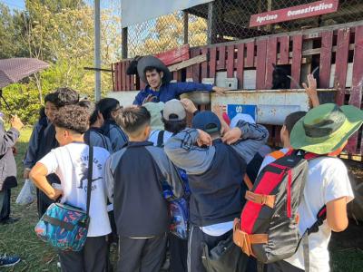 Durante el recorrido, guiado por técnicos del Viceministerio de Seguridad Alimentaria y Nutricional (VISAN), los alumnos participaron en distintas actividades dentro de la granja, como la siembra de hortalizas hasta el manejo de especies como gallinas, conejos, cabras y peces.