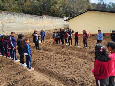 Entre risas y con las manos llenas de tierra y semillas que prometen vida, estudiantes de la Escuela Oficial Rural Mixta de la aldea San Antonio Sija, en San Francisco El Alto, Totonicapán, transforman un área del centro educativo en un huerto escolar pedagógico.