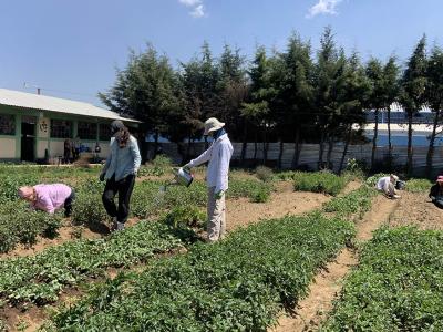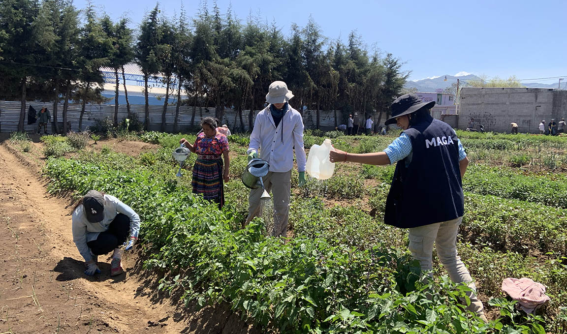 El personal del Departamento de Apoyo a la Producción de Alimentos (DAPA), del Viceministerio de Seguridad Alimentaria y Nutricional (VISAN), fue el encargado de brindar asistencia técnica y acompañamiento, tanto a los estudiantes como a las agricultoras locales. Durante la jornada, realizaron labores como la limpieza y elaboración de tablones, siembra de pilones de hortalizas, distanciamiento de siembra y producción de compost orgánico.