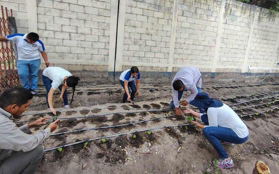 Alumnos de la jornada vespertina del Instituto Nacional de Educación Básica Experimental con Orientación Ocupacional, municipio de Guastatoya, El Progreso, participaron en la implementación de un Huerto Escolar Pedagógico, como parte de las acciones para fortalecer la agricultura familiar y fomentar en los jóvenes el valor de producir sus propios alimentos.