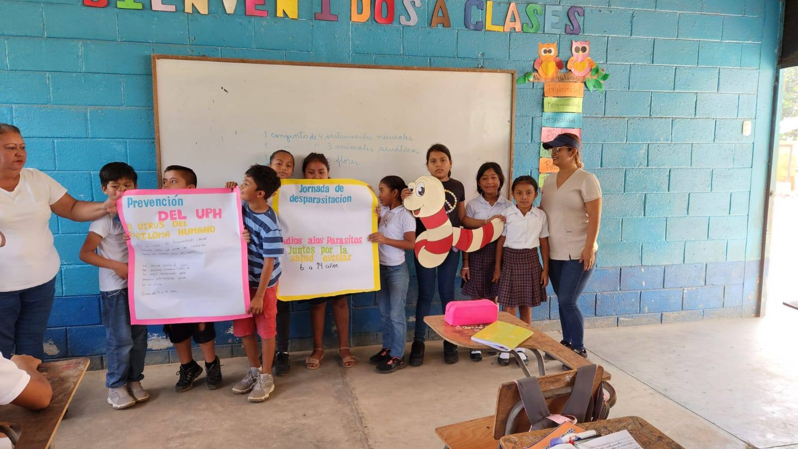La unión de esfuerzos entre el equipo de Salud y la comunidad educativa, ha permitido avanzar en el desarrollo de las jornadas de desparasitación en centros educativos de Nuevo San Carlos, Retalhuleu.