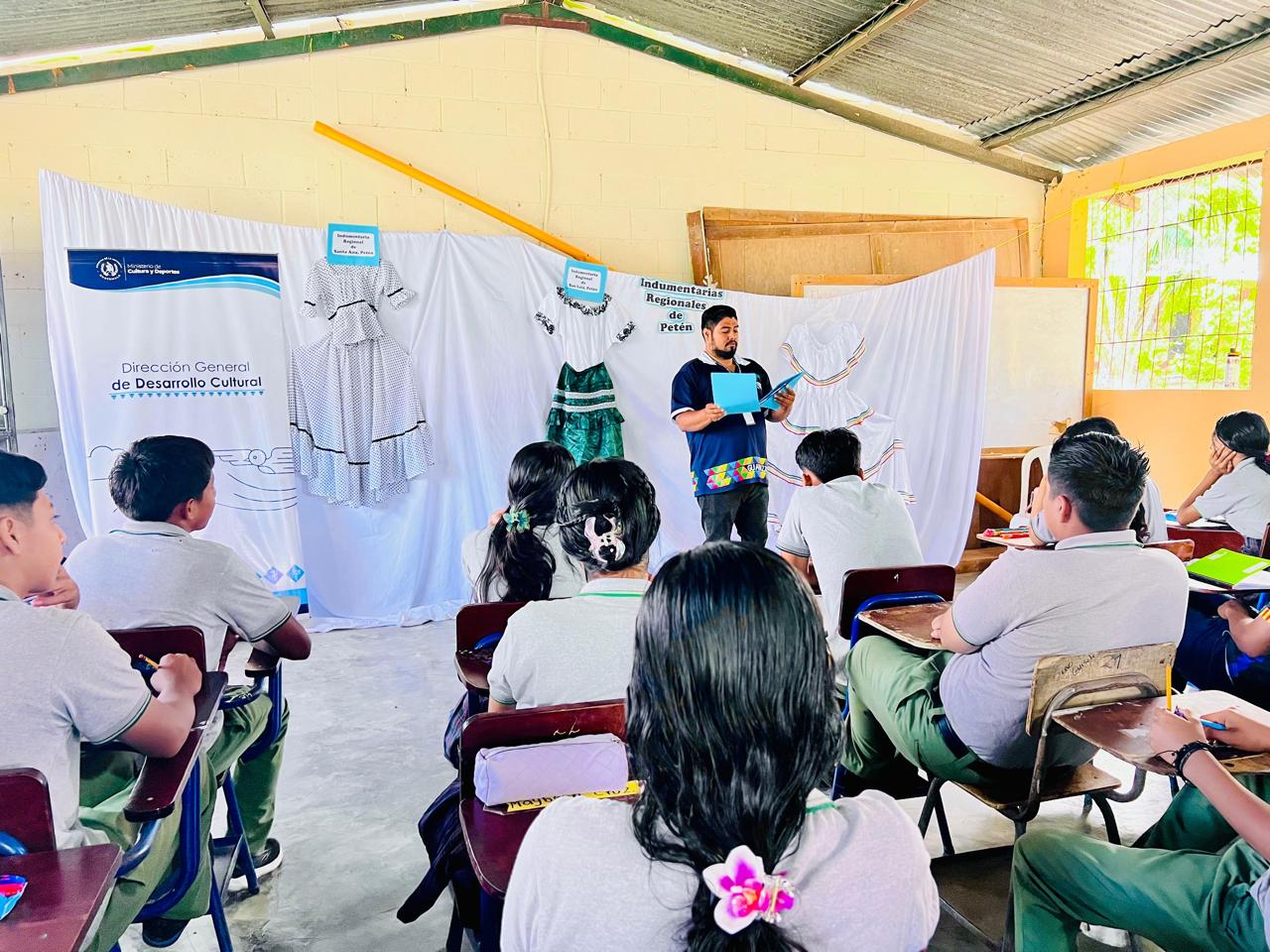 Con el propósito de proteger y promover el patrimonio inmaterial, 55 estudiantes de tercer grado básico del Instituto de Telesecundaria de la aldea Paxcamán, Flores, Petén, participaron en el taller «Conociendo la Indumentaria Regional de Flores, San Luis y Santa Ana».