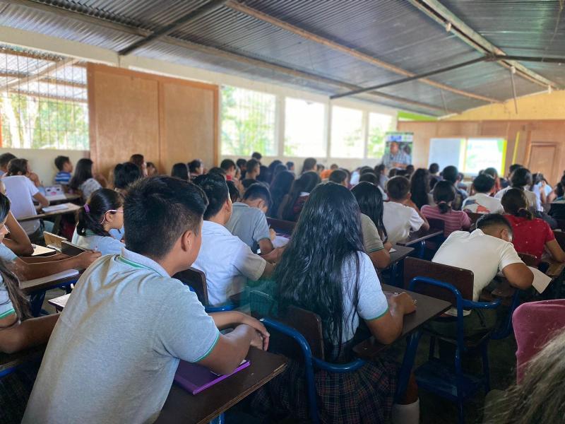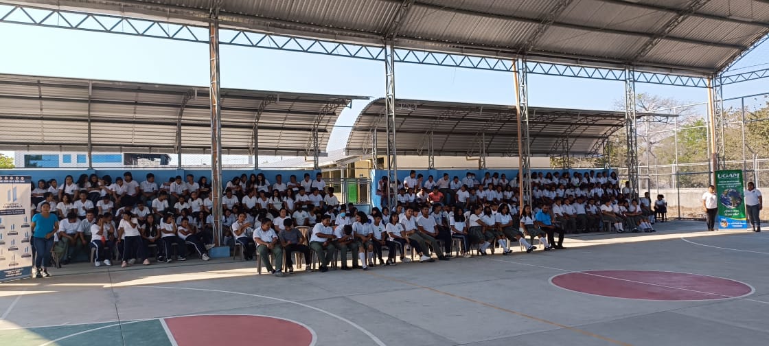 En el barrio Valle Nuevo, San Benito, Petén, la delegación capacitó a 210 estudiantes del Instituto Nacional de Educación Básica de la localidad, sobre la problemática y soluciones para los residuos y desechos sólidos, con base en el Reglamento 164-2021 para la gestión integral de los residuos y desechos sólidos comunes.