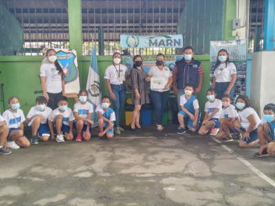 La delegación del MARN y gobernación Departamental entregaron un reconocimiento a la profesora Gladys Del Rosario Tzun Ramírez, por el trabajo de proyección y concientización hacia la niñez y su comunidad.