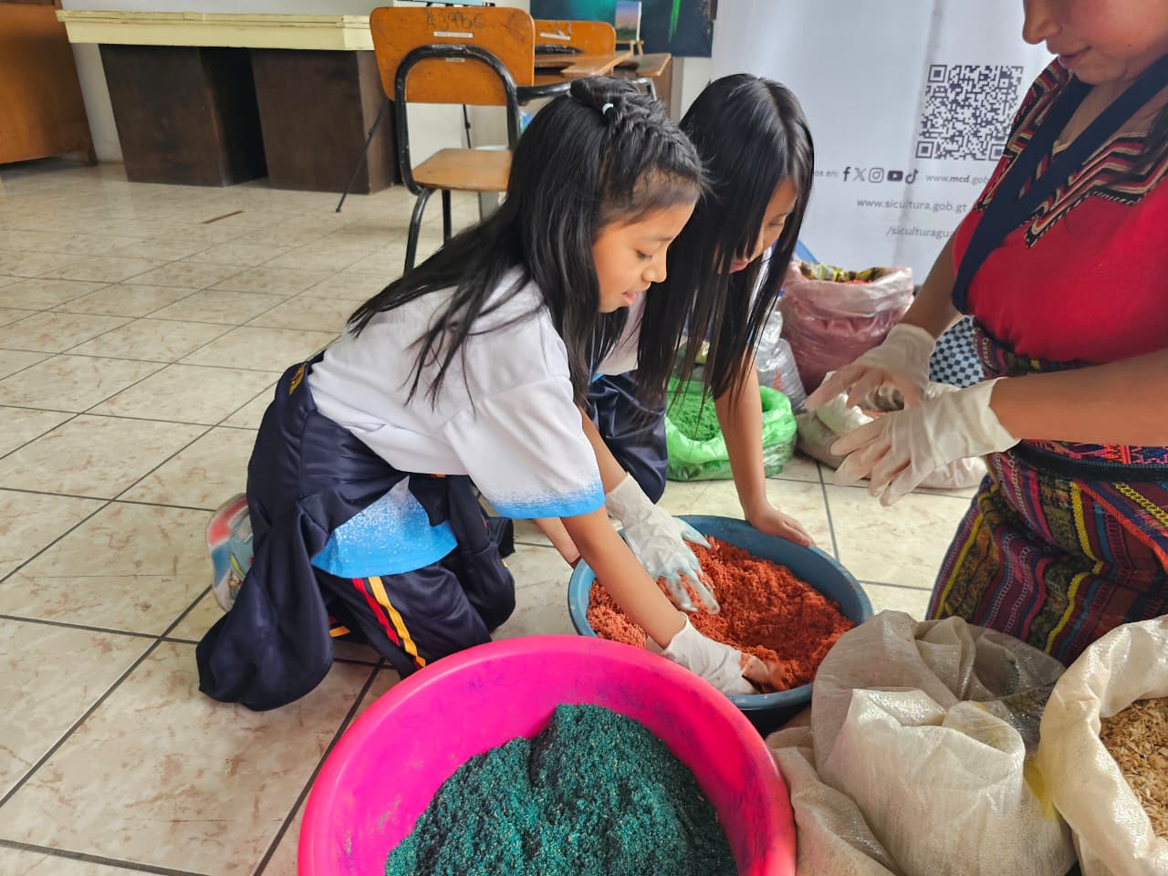 Para mantener las técnicas tradicionales vivas, 45 estudiantes de la Escuela Oficial Urbana Mixta «Estados Unidos de América» jornada matutina, asistieron al Taller Elaboración de aserrín teñido de forma artesanal en el marco de la Cuaresma y Semana Santa. La actividad se realizó este 19 de marzo, Casa de Desarrollo Cultural de la localidad en coordinación con el Museo Regional del municipio de Santiago Sacatepéquez, Sacatepéquez.