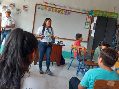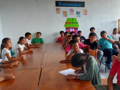 Estudiantes de la Escuela Oficial Rural Mixta aldea Uaxactún, Flores, Petén, fueron capacitados sobre el Reglamento 164-2021 para la gestión integral de los residuos y desechos sólidos comunes.