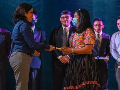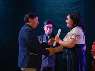 Quetzaltenango, 25 de octubre de 2022. Gracias a la alianza estratégica entre el Ministerio de Trabajo y Previsión Social (Mintrab), la Municipalidad de Quetzaltenango y la Agencia de Cooperación Española, el Programa Nacional de Escuelas Taller y Talleres de Empleo (PNETTE), ubicado en ese departamento, graduó a sus estudiantes con un acto especial que se desarrolló en el Teatro Municipal de Quetzaltenango.
