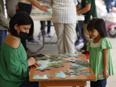 Al menos 100 estudiantes de preprimaria, primaria y básicos, participaron en la feria ambiental, en la que los niños disfrutaron, junto a sus padres, de actividades tradicionales como lotería, pesca y rompecabezas, y recibieron pláticas de cómo reciclar y cuidar el medioambiente, impartidas por los educadores ambientales de la Dirección de Formación y Participación Social (Difopas), del MARN.