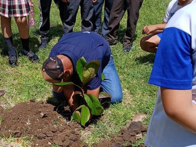 Bajo el tema focal de "La Reforestación", estudiantes de 4to a 6to grado de primaria aprendieron acerca de la importancia de la reforestación para el medioambiente y los pasos para plantar correctamente un árbol.
