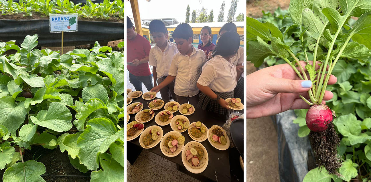 Uno de los principales aprendizajes fue el aprovechamiento integral del rábano. Se explicó que tanto sus hojas como su bulbo son altamente nutritivos: las hojas aportan vitaminas C y K, además de hierro, mientras que el bulbo es rico en vitamina C, agua, potasio y fibra, esenciales para una alimentación saludable.