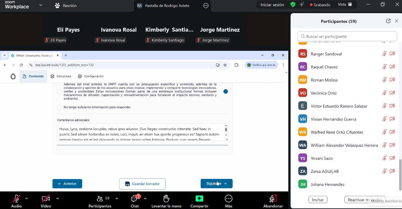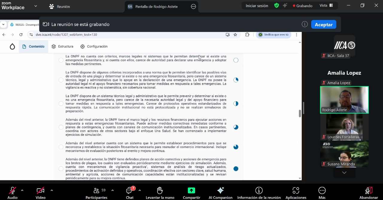 Un centenar de representantes del sector productor y de gremios agrícolas, participaron en la videoconferencia relativa a la evaluación de Desempeño, Visión y Estrategia (DVE), desarrollada con el objetivo de fortalecer la capacidad fitosanitaria del país.