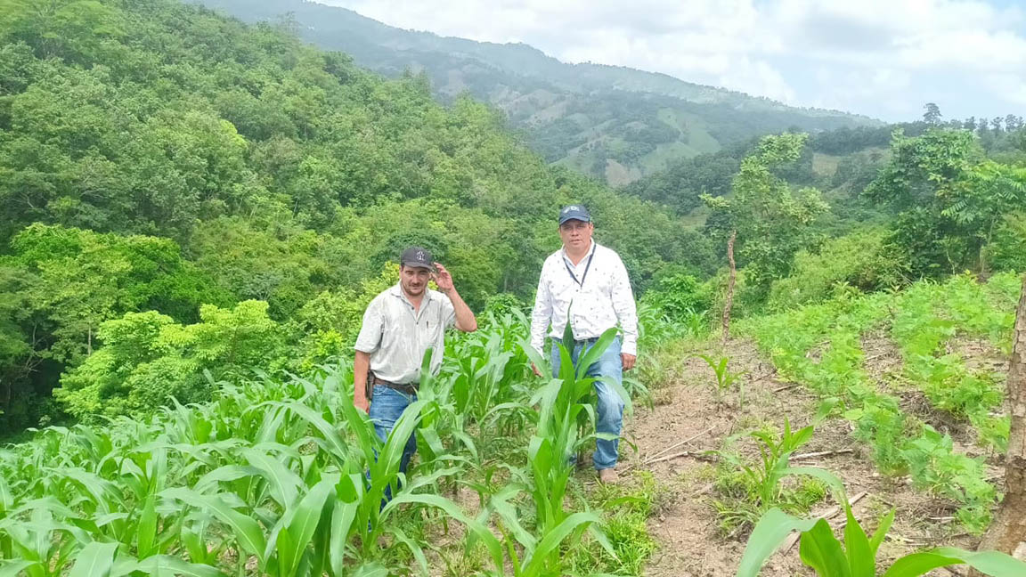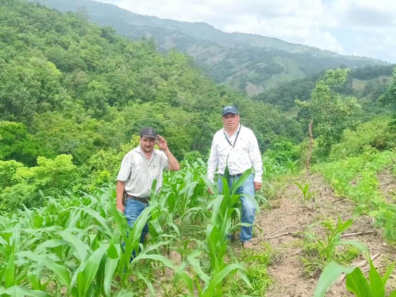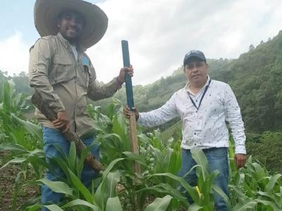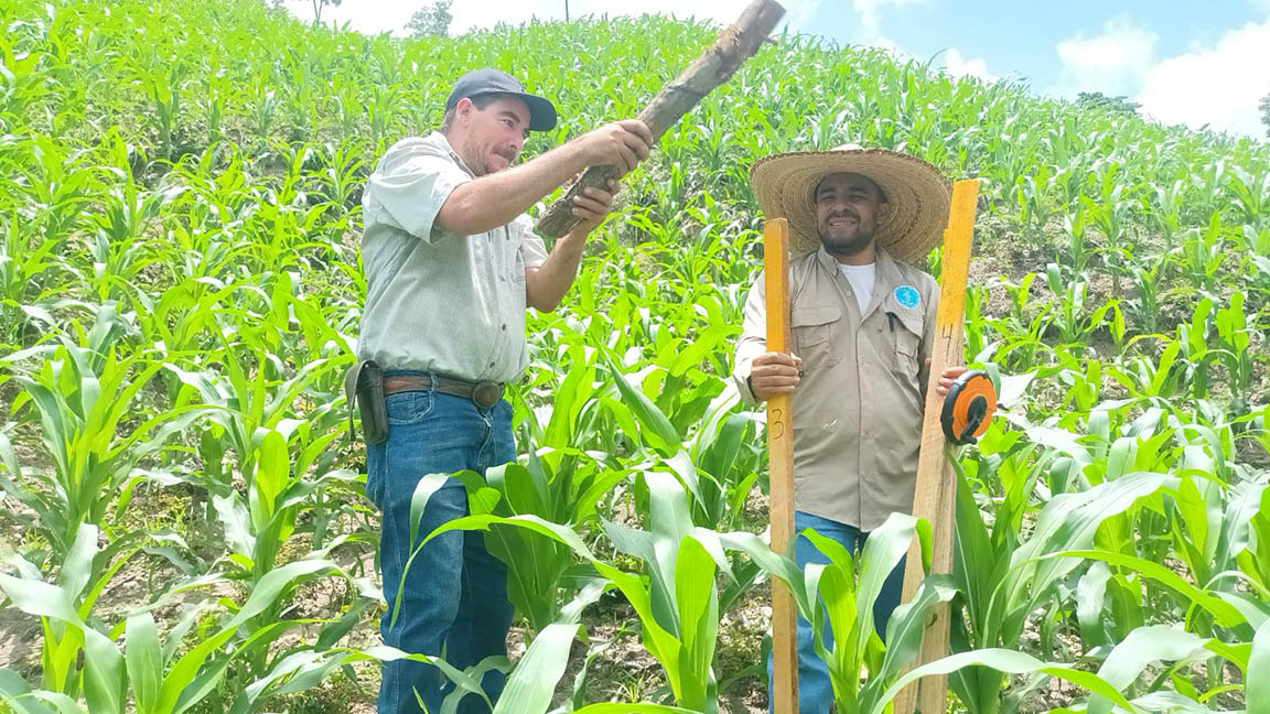 Técnicos del Ministerio de Agricultura, Ganadería y Alimentación (MAGA) visitaron una parcela de validación de semillas de maíz híbrido F5 e ICTA B7, ubicada en la aldea El Roblaron, municipio de La Unión, Zacapa, para evaluar el rendimiento de la variedad sembrada.
