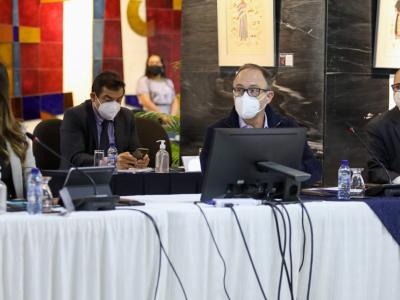En la cuarta reunión del Gabinete Específico de Desarrollo Económico participan representantes de los ministerios de economía, finanzas, relaciones exteriores, ambiente, agricultura, energía y minas, de comunicación; así como del Banguat, Inguat, Segeplan, SIB, SAT, PRONACOM, ZOLIC, SENACYT y Plan Trifinio.