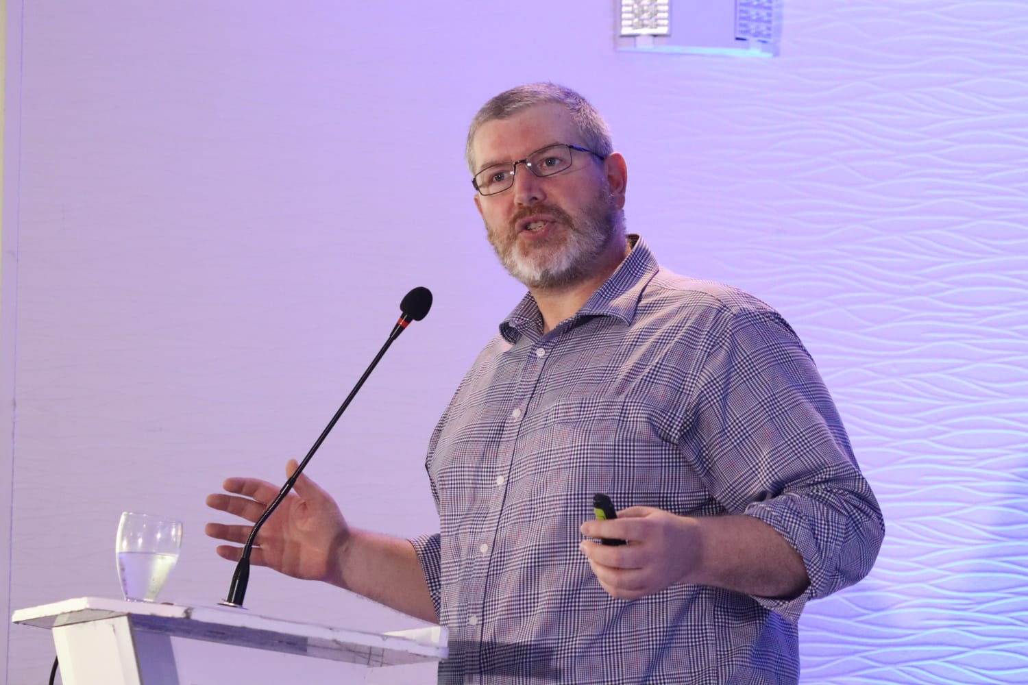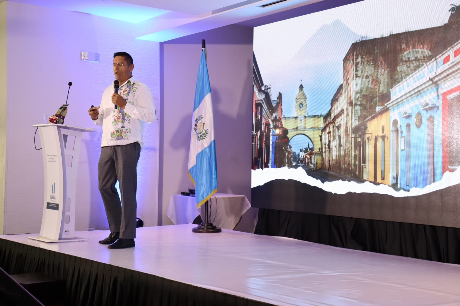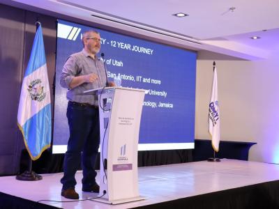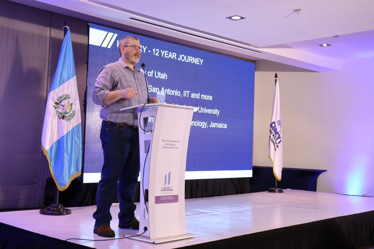 El evento inició con la intervención de James Thompson, vicepresidente de innovación de la Universidad de Notre Dame, Estados Unidos, quien, compartió su experiencia sobre el ciclo para construir el modelo de un ecosistema de innovación y cómo aplicarlo a Guatemala.