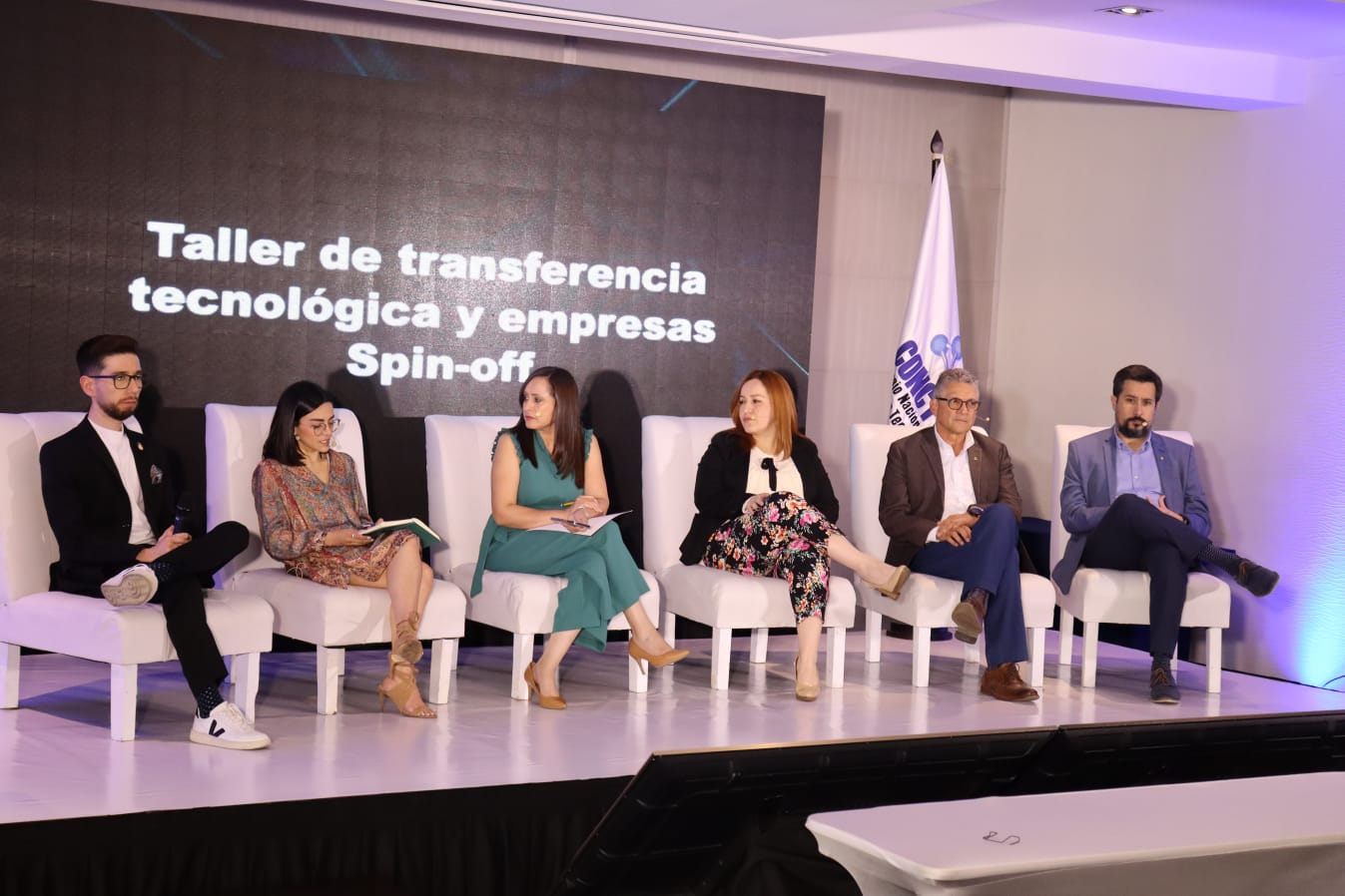 El taller de transferencia tecnológica y empresas spin-off se desarrolla este viernes en un hotel capitalino y logró reunir a más de 75 participantes del sector privado, de la academia, sociedad civil y gobierno, para conversar sobre la importancia de articular esfuerzos y construir una ruta que permita el trabajo conjunto para ser más competitivos.