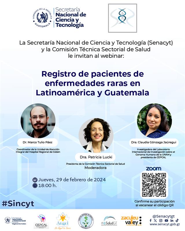 El seminario contará con la participación de los médicos Marco Tulio Páez, coordinador de la Unidad de Atención Integral del Hospital Regional de Cobán, Claudia Gónzaga, investigadora del Laboratorio Internacional de Investigación sobre el Genoma Humano de la Universidad Nacional Autónoma de México (UNAM) y Patricia Lucki, presidenta de la Comisión Técnica Sectorial de Salud.