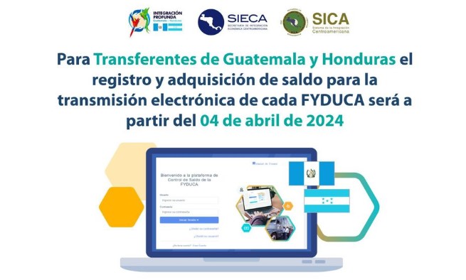 Cabe mencionar que, a partir del 04 de abril del 2024, se habilitará el registro de los usuarios de países que ya utilizan la FYDUCA, para que puedan adquirir sus tokens de manera anticipada en el sitio web: www.fyduca-controlsaldo.sieca.int ya que; a partir del 16 de abril los tokens adquiridos serán necesarios para la transmisión electrónica de cada FYDUCA.