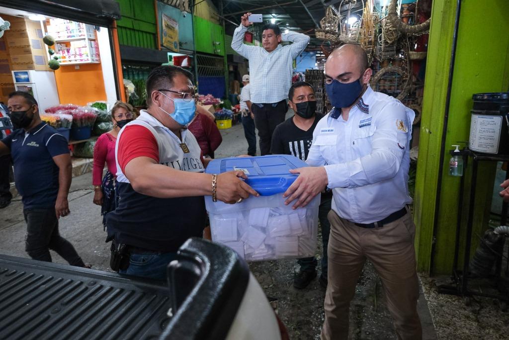 El vicepresidente de los locatarios también agradeció la entrega. “Hoy estamos recibiendo una donación de 50 mil mascarillas para nuestra gente, gracias al señor presidente y a nuestro amigo Pancho, secretario de Bienestar Social, que siempre han estado pendientes de nosotros durante la pandemia”, manifestó.