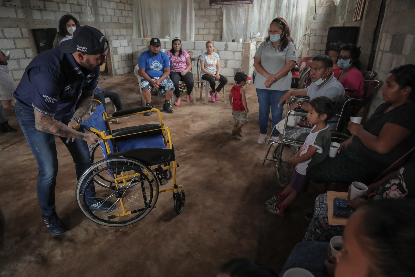 El secretario Francisco Molina pudo conversar con uno de los líderes de la comunidad, para quien la Familia SBS gestionó una silla de ruedas en conjunto con la Secretaría de Obras Sociales de la Esposa del Presidente -SOSEP-.