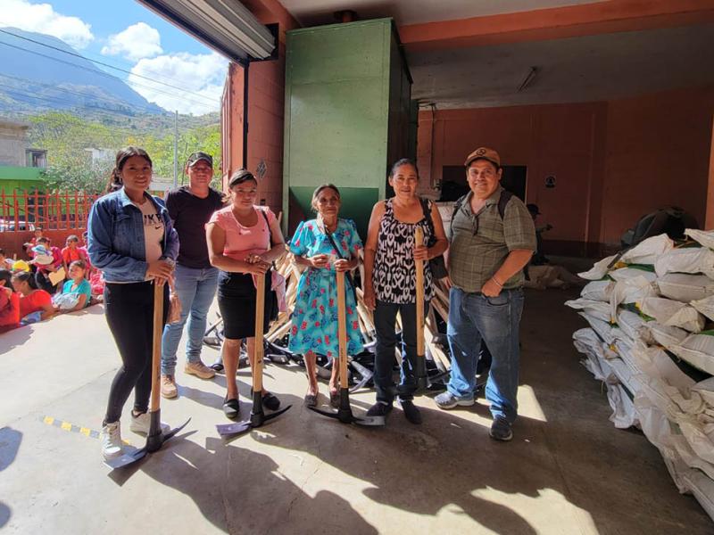 Por su parte, en Santa Lucía La Reforma, Totonicapán, se distribuyeron bombas de aspersión, piochas y semillas de hortaliza. Cabe resaltar que este municipio es parte de la estrategia intersectorial Mano a Mano, que busca abordar de manera integral las necesidades de las comunidades rurales.