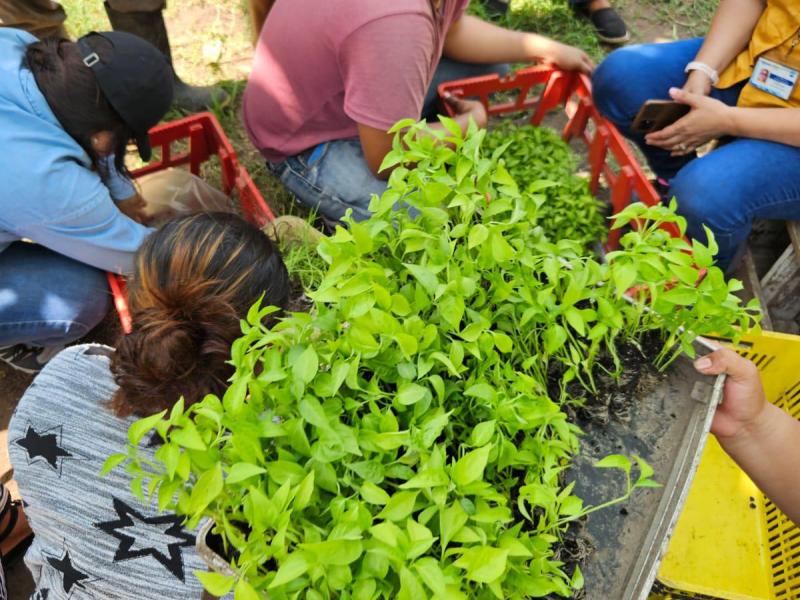 Se entregaron 2400 pilones de hortalizas y plantas medicinales para los huertos comunales La Línea N.1 y La Línea N.2, de familias ubicadas en la comunidad Línea 8, del municipio de Masagua, Escuintla, con el propósito de fortalecer su seguridad alimentaria y nutricional.