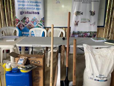 En Santa María Cahabón, los kits distribuidos incluyen una bomba de aspersión de 16 litros, abono orgánico tipo compost, semillas de hortalizas como acelga, cilantro, cebolla blanca, güicoy y pepino, además de semillas nativas como amaranto y chipilín. También se entregaron herramientas básicas para facilitar el trabajo en el huerto.