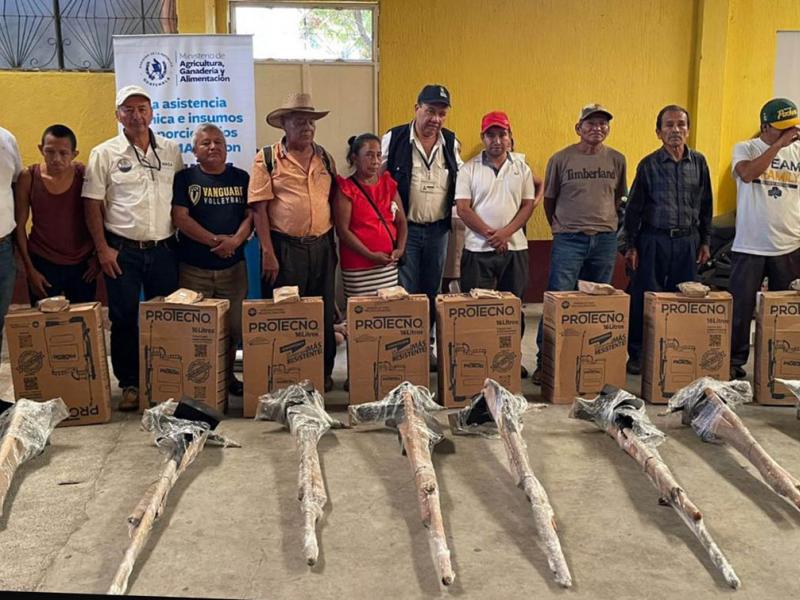 Mientras tanto, en Samayac, Suchitepéquez, las familias recibieron una bomba de aspersión, semillas de hortalizas y especies nativas, así como herramientas agrícolas como machete, azadón, piocha y pala, indispensables para preparar la tierra y cuidar los cultivos.