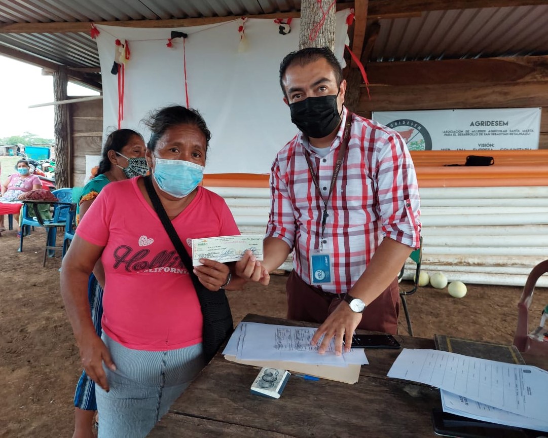 A través de Asamblea General Extraordinaria realizada en Hacienda San Lucas ubicada en el municipio de Champerico, personal del programa de Desarrollo de Comunidades Agrarias Sostenibles -DCAS- de la Oficina Regional del Fondo de Tierras Retalhuleu, entregó cheques para compra de alimentos; a familias beneficiarias de Comunidad Agraria Sostenible La Bendición.