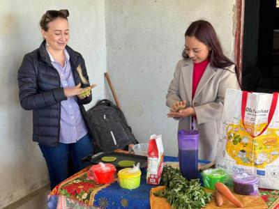 La jornada permitió a los participantes experimentar técnicas para integrar estos ingredientes en los alimentos cotidianos, creando opciones atractivas y saludables para los niños de la comunidad. Más allá de la cocina, la actividad fortaleció la educación alimentaria, promoviendo dietas balanceadas con recursos locales y fomentando la innovación en la preparación de comidas tradicionales.